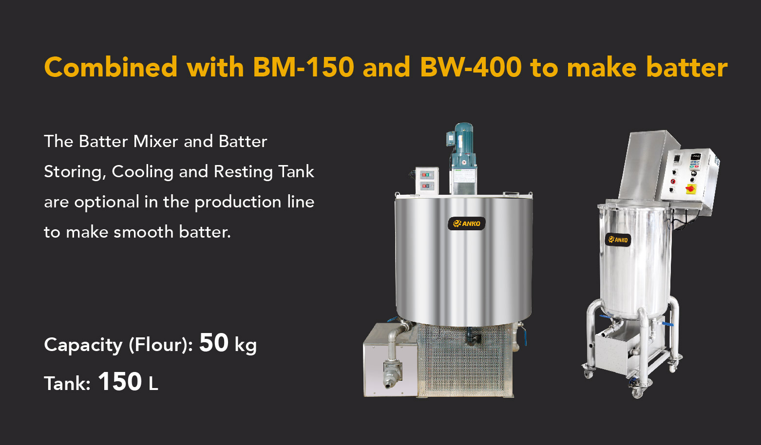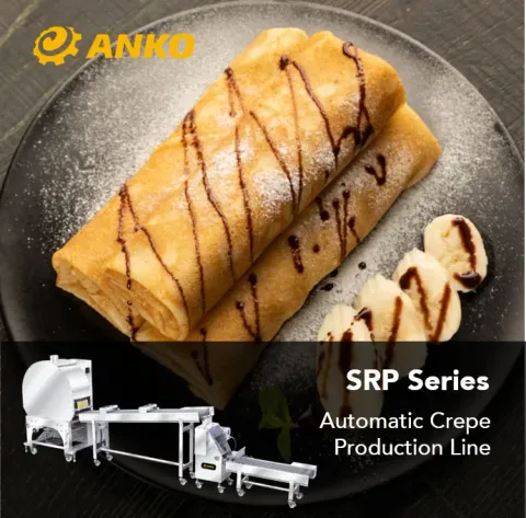 ANKO’s Crepe production solution provides comprehensive services in equipment planning and arrangement according to your factory layout and required production capacity. Bakery manufacturers can easily automate production with our support. In addition to the provision of a variety of machines, ranging from preparing, forming to packaging, ANKO helps you solve all problems of the Crepe production, such as workflow, recipe, equipment, and staff deployment. In the solution below, the machines can be adjusted in model and quantity according to real production needs.