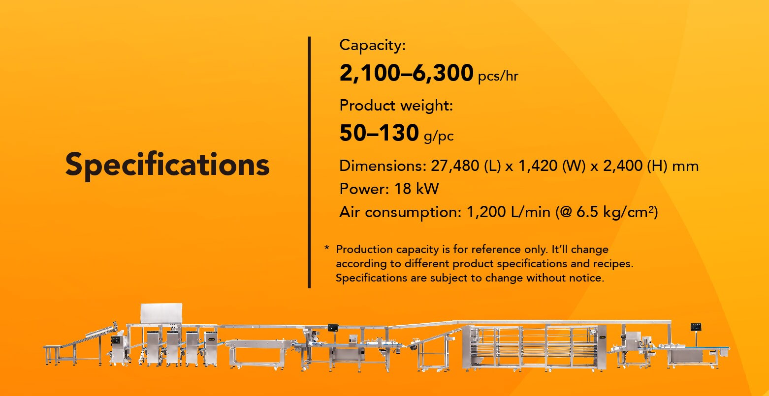 The stretching devices can produce dough sheets as thin as 0.8 mm.