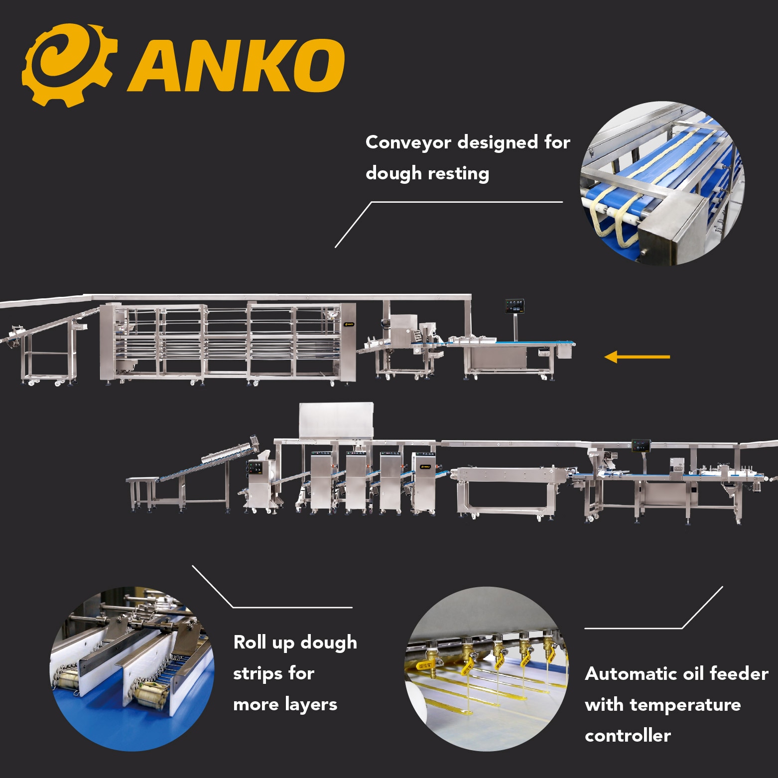 ANKO’s Lachha Paratha production solution provides comprehensive consulting service and solves problems of production based on our years of experience, which enables you to automate production with less effort and stress. You can have one-stop shopping for not only Lachha Paratha making machines, such as sieving, wrapper making, and packaging, but also your own proposal that is made by ANKO's sales engineers according to your production needs, factory layouts, existing equipment, human resources, etc. In the solution below, the machines can be adjusted in model and quantity according to real production needs.